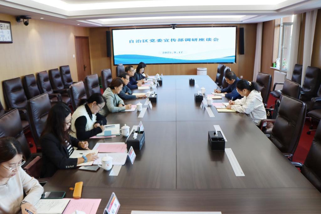 9月17日上午,自治区党委宣传部副部长王虎、自治区宣传部理论处副处长李莉一行来校调研。学校党委书记黄海主持调研座谈会,党委委员、副校长张建茹出席并发言,学校相关职能部门负责人参加座谈会。