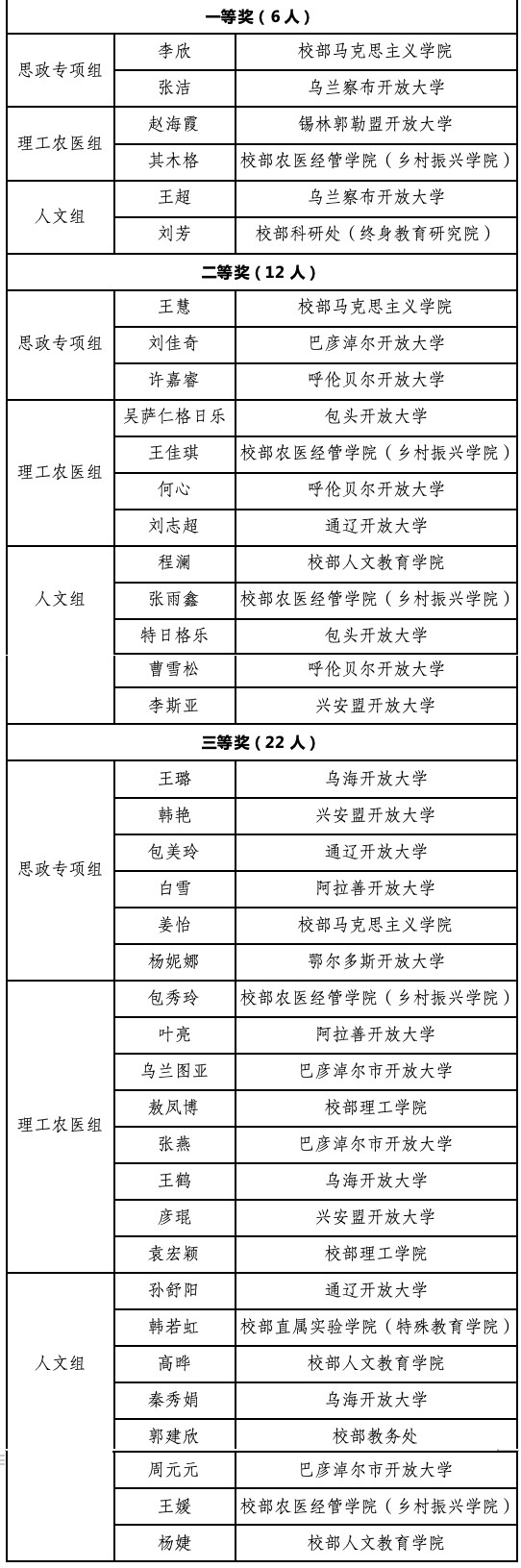 本次全区开放大学系统青年教师教学技能竞赛自启动以来,得到各盟市分校的高度重视和青年教师的积极响应。竞赛设文科组、理工农医科组、思政课专项组三个竞赛组别,经过初赛的激烈选拔角逐,校部和10所分校共40位优秀青年教师脱颖而出,会师决赛。决赛共设置教学设计、课堂教学、教学反思三个项目,多维度展现青年教师的教学能力与卓越风采。