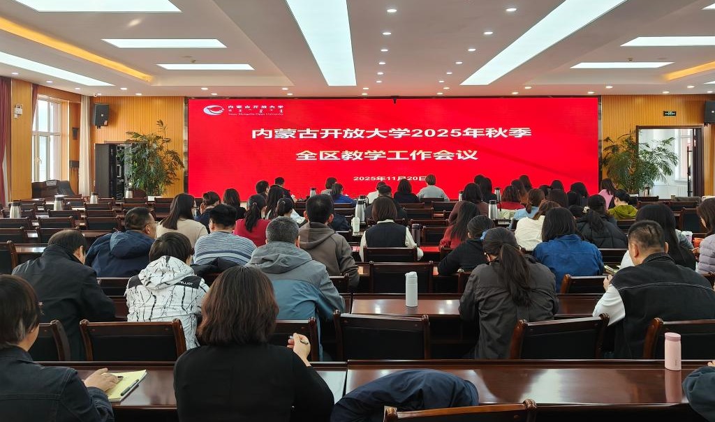 为扎实推进2025年秋季学期各项教学工作,确保教学任务稳步落地、教学质量持续提升,我校于11月20日下午召开全区教学工作会议。校党委委员、副校长张建茹主持会议并作讲话。校部教务处、教学质量监控与评估处负责人,各学院负责人及全体专兼职教师线下参会;各盟市分校领导、教学管理人员及骨干教师通过线上同步参会。