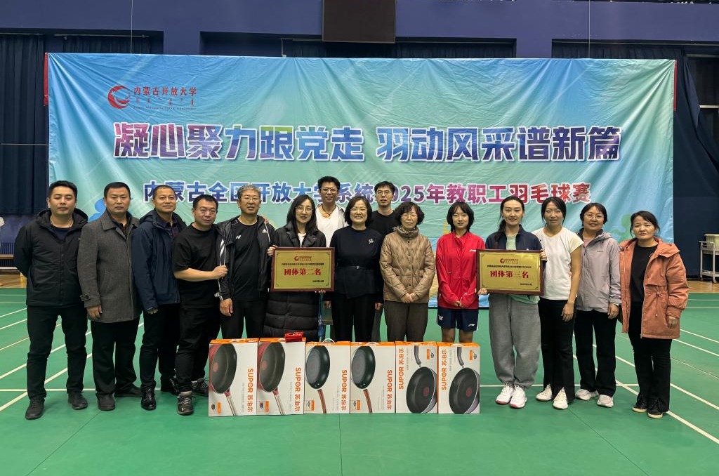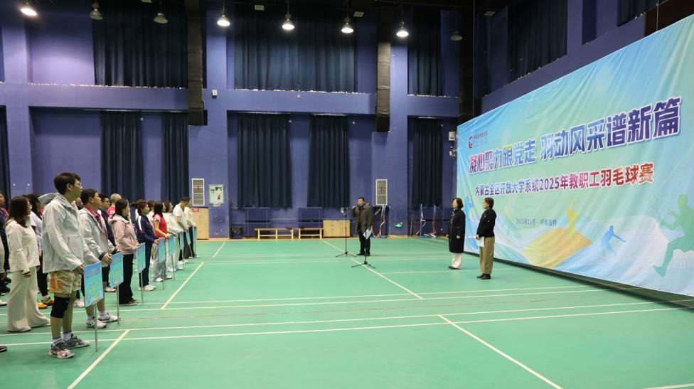11月19日至20日,内蒙古全区开放大学系统2025年教职工羽毛球比赛成功举办。校党委委员、副校长张建茹致开幕词,党委副书记马桂英宣布比赛正式开始。