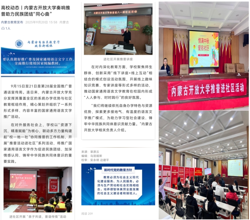 在多年实践摸索中逐渐形成“四位一体”推普工作运行模式:以“理论宣讲”为引领,精准覆盖国家通用语言文字推广普及、中华优秀传统文化弘扬等领域;以“特色活动”为驱动,持续开展“推普活动进社区”“经典诵读大赛”等品牌活动,不断拓展推普受众覆盖面,累计服务群众千余人;以“资源建设”为支撑,聚焦教材与系列微课两大核心载体,打造实用性强、适配度高的优质资源,为项目高效推进提供了扎实根基;以“科研创新”为引擎,坚持边实践边研究,围绕推普实践的重点难点问题开展课题研究,全面提升教师团队的专业能力与工作系统性。