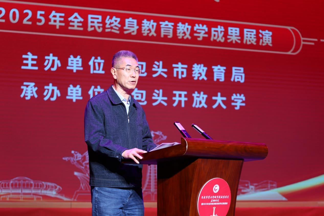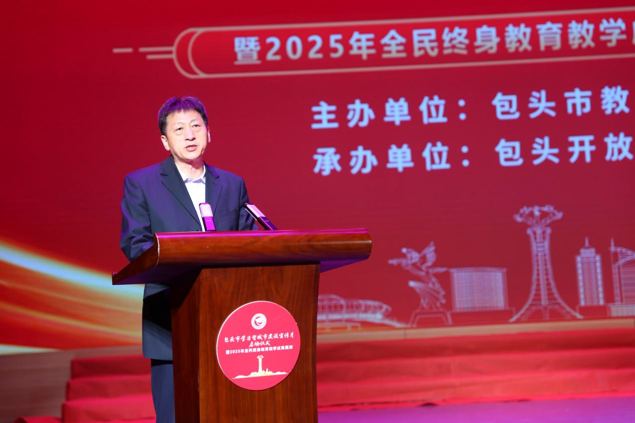 包头市教育局四级调研员高九安在讲话中指出,包头市成功入选全国126个学习型城市网络,成为内蒙古自治区首批获此殊荣的城市,这不仅是对我市多年来推动全民终身学习工作成果的充分肯定,更为城市未来发展注入了新的活力。近年来,包头市委、市政府高度重视学习型城市建设的顶层设计,市教育局依托包头开放大学开展全民终身教育体系建设,整合我市职业院校、老年大学、旗县区开放大学(学习中心)等全民终身教育资源,逐步建立起覆盖全市的多级全民终身教育服务网络。希望以此次活动为契机,进一步坚定信心、振奋精神,开拓创新、扎实工作,努力开创包头市全民终身教育事业新局面。