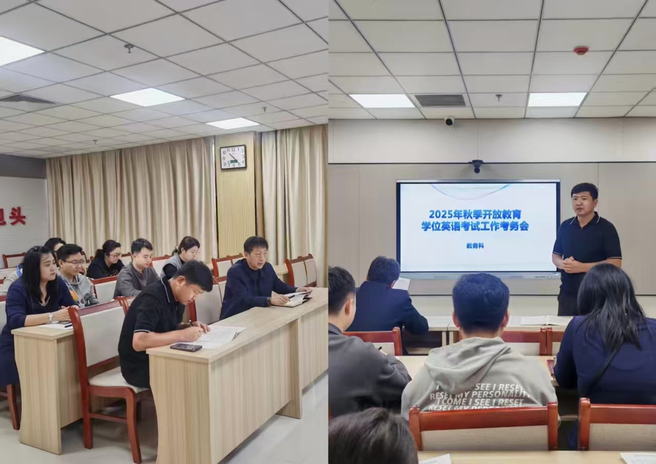 为保障考试顺利推进,包头开放大学提前部署、细致筹备:考前安排学位英语考务会,会议由教务科科长张永富主持,校长赵新宪针对本次考试,提出了思想高度重视、精准把控细节、做好支持服务、监考以身作则等四项要求;教务科王波为全体考务、技术人员、监考人员开展专业培训,明确考试流程、纪律要求及应急处理规范,筑牢考试公平防线。