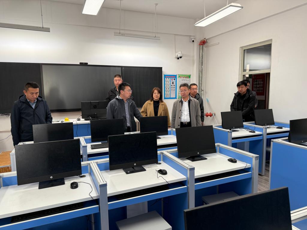 座谈会后,考察组一行在固阳县职业教育中心负责人的陪同下,深入校园,实地查看了学校的办学环境、硬件设施。重点考察了中心的多媒体教室、计算机实训室、网络中心以及相关专业实训场地,详细了解了教学设备配置、网络覆盖、学习支持服务环境等基础条件。