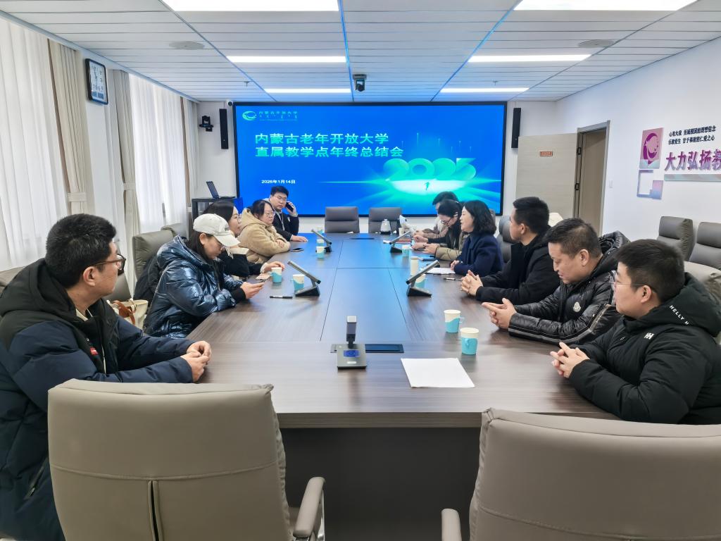 1月14日上午,老年教育学院组织召开2025年度直属教学点工作总结大会。会议以“深化教学改革、强化资源联动、优化服务供给”为核心议题,全面梳理过往成效、部署新年任务。老年教育学院副院长敖特更吉雅主持会议,各直属教学点负责人及老年教育学院全体参会。