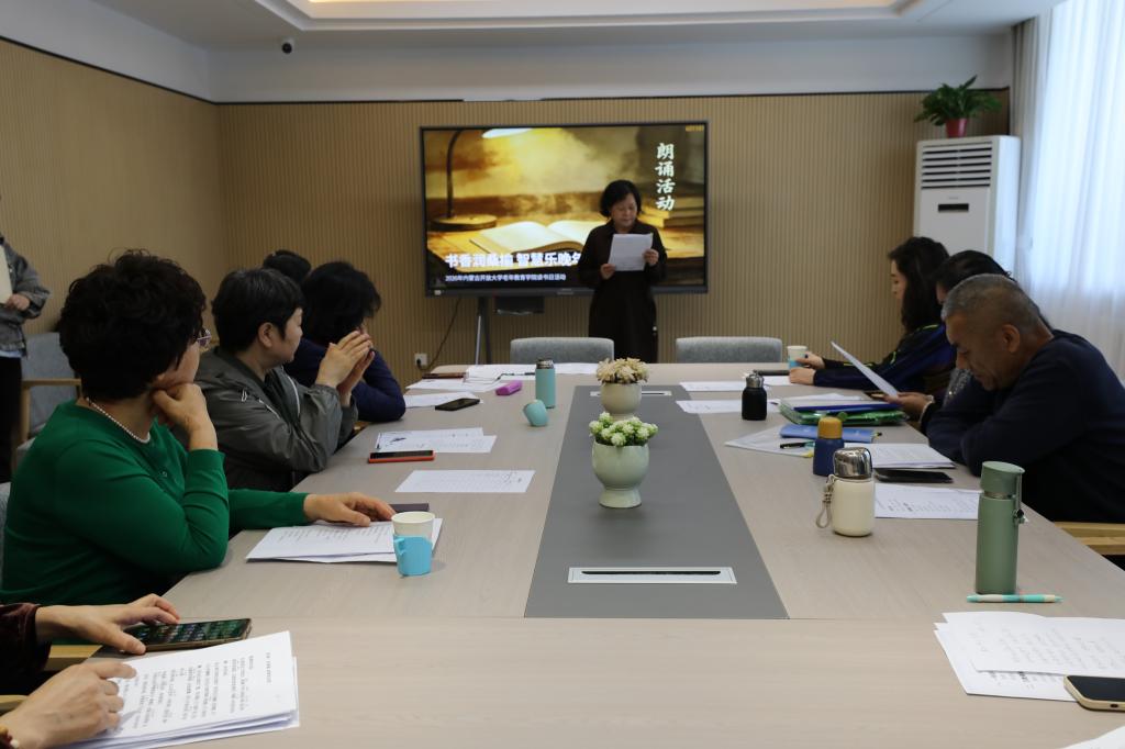 本次活动共设置四个环节,内容充实且形式多元。活动以趣味诗词游戏拉开序幕,学员踊跃参与,在互动过程中感受中华诗词的独特魅力,现场气氛轻松而热烈。在学员经典诵读环节,学员们满怀深情地诵读经典篇目,或激昂澎湃,或婉转悠扬,充分展现出对传统文化的热爱。随后,朗诵班张老师为学员们朗诵朱自清散文《春》,其舒缓温柔的语调中蕴含着对春日生机的细腻体悟。活动最后,学员体验了新颖的AI绘画环节,借助智能应用技术将所诵诗词转化为专属画作,使诗词中的美好意境以可视化形式呈现,实现了书香与智慧的跨界融合。