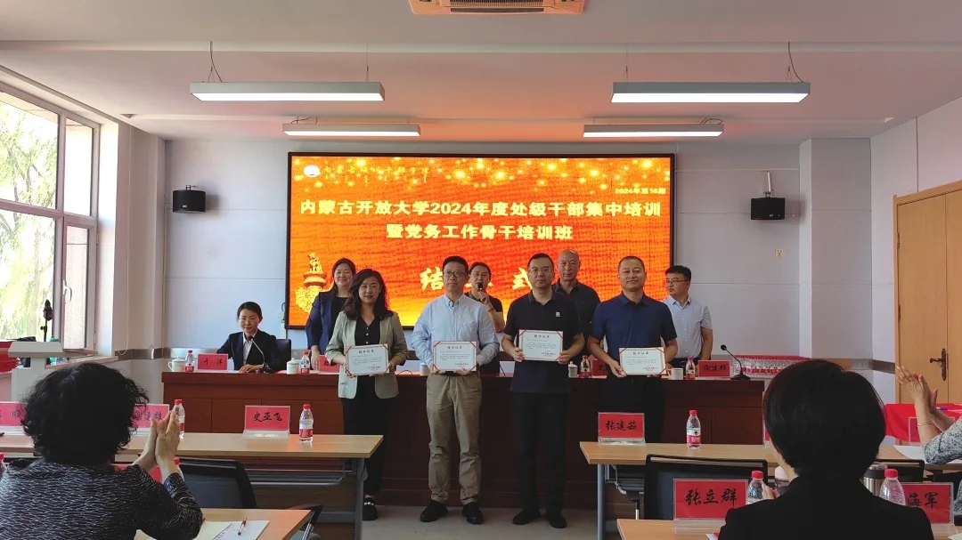 5月30日,为期5天的内蒙古开放大学处级干部集中培训暨党务工作骨干培训班在内蒙古城川干部学院顺利结业。校党委委员、副校长张建茹,校党委委员、统战部部长史亚飞,校党委委员、组织部部长微丽丝出席结业式并为优秀学员和学员代表颁发了荣誉证书和结业证书。